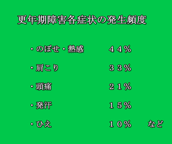 この時期卵巣機能の低下が始まり、ホルモンのバランスが崩れる事により、さまざまな精神的、身体的症状、いわゆる「更年期障害が出る可能性があります。