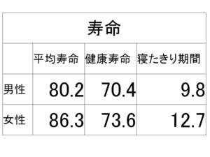 平均寿命から健康寿命を引いたものが介護の世話になったり、寝たきり状態になる期間です。